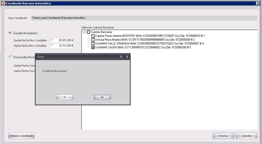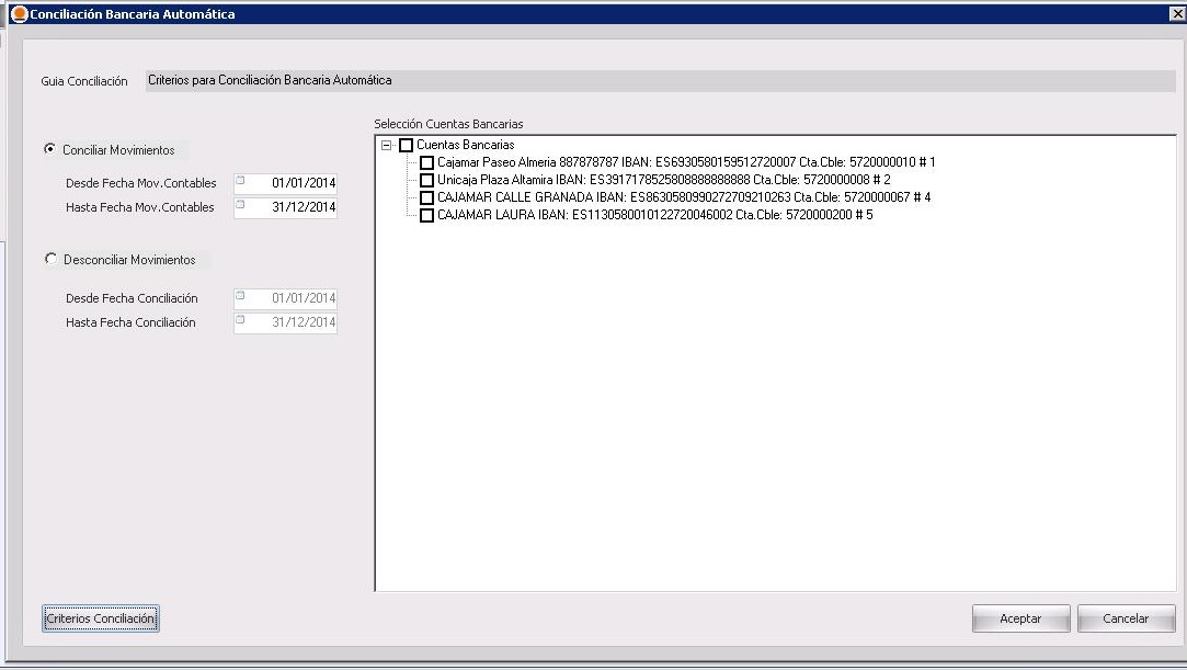 Deberemos de marcar el check en la cuenta bancaria que queremos realizar la conciliación.