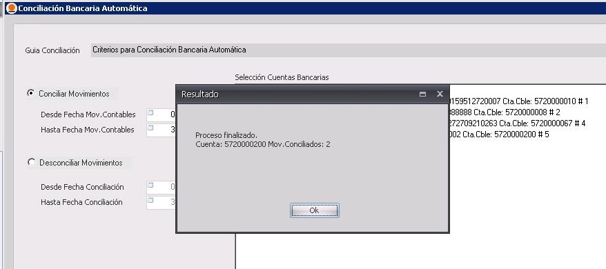 La visualización de la pantalla de conciliación automática es la que se muestra a continuación: