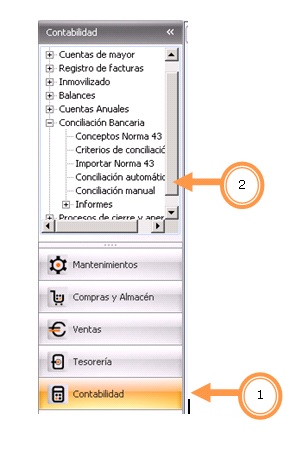 La conciliación automática es una herramienta que, a partir de los criterios establecidos para la conciliación, realiza el cotejo y asociación automática de los movimientos existentes en Indot contabilidad con los que constan en las entidades bancarias con las que se trabaja, y que han sido previamente importados al programa, a partir de ficheros del tipo Norma 43.