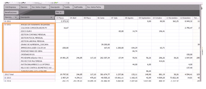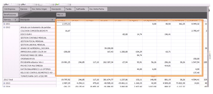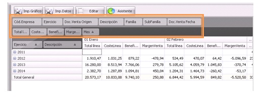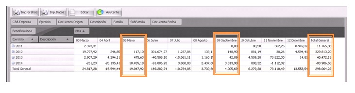 Nos clasifica la información, normalmente en meses y con un total general. Es posible tener más de un valor en función de lo que hayamos informado dentro del área de datos.