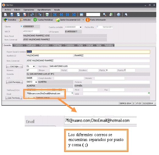 Ahora ya es posible informar de varios emails a los cuales se les enviará la documentación correspondiente a facturas o cualquier otra.