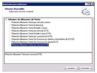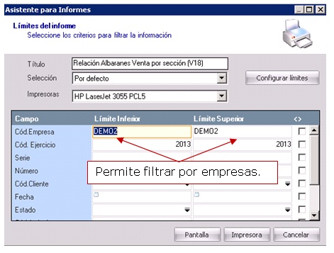 Realiza un informe de Albaranes de Ventas por sección, permitiendo consolidar empresas a agrupar.