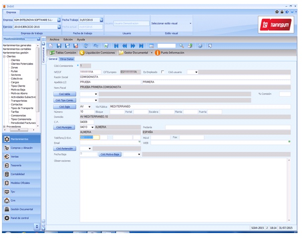 Desde Mantenimientos -> Mantenimientos de Gestión -> Comisionistas
