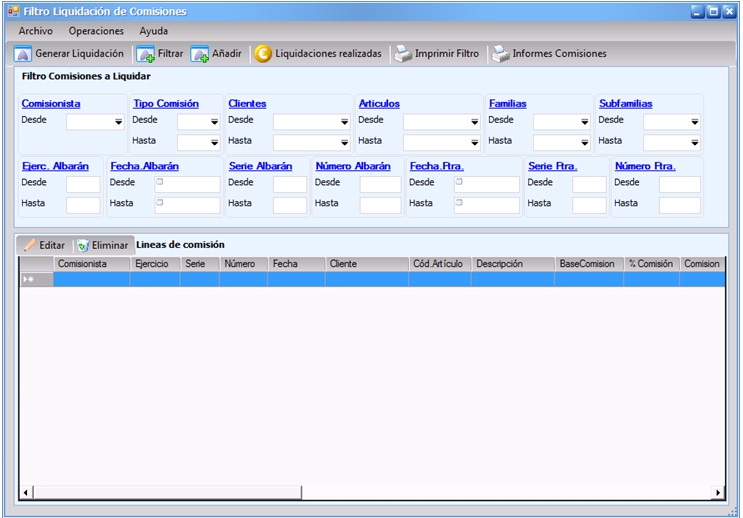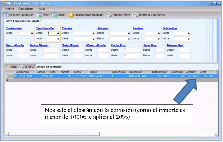 Si ya hemos pagado la comisión la liquidamos dándole a  y ya no saldría más en este filtro. Una vez liquidada, para consultarla tendríamos que ir a  .