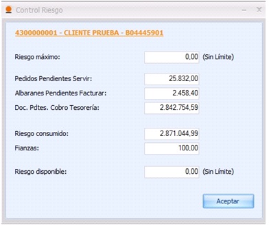 2. Consultar los importes del cliente, en el botón correspondiente, mostrando un informe resumen del mismo: