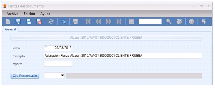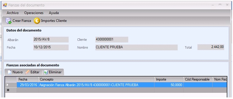 A partir de este momento, podremos asociar una fianza a un documento de venta, ya sea pedido o albarán.