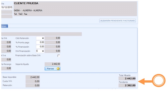 Este importe consignado restará en el correspondiente documento (pedido o albarán) generado: