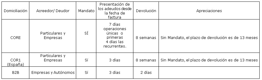 Las empresas o acreedor tienen que decidir que tipo de adeudo quieren realizar a sus clientes.