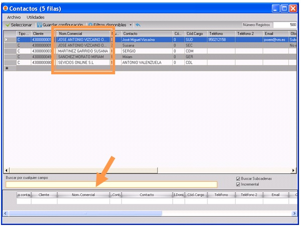 Y comprobamos que tenemos la opción de búsqueda por el campo de nombre comercial.