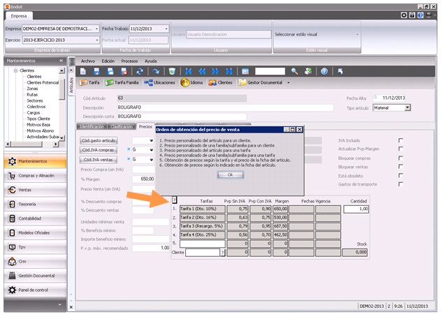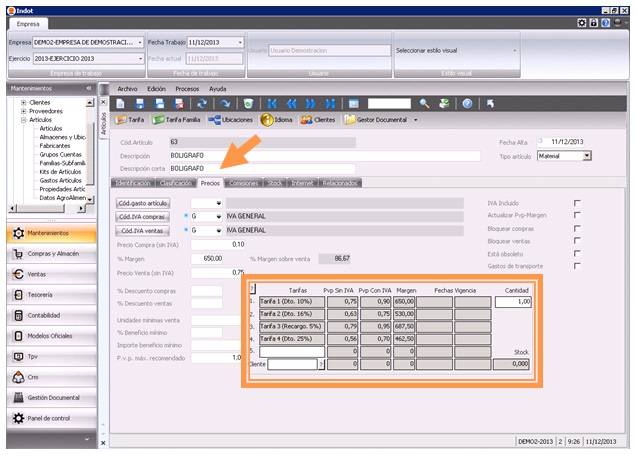 32.5.1 Caso práctico: Consultar información del artículo “Bolígrafo”, referente su precio, aplicando distintas tarifas.