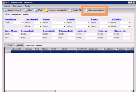 En esta pantalla es donde se ha incorporado el botón denominado “Informes Comisiones”.