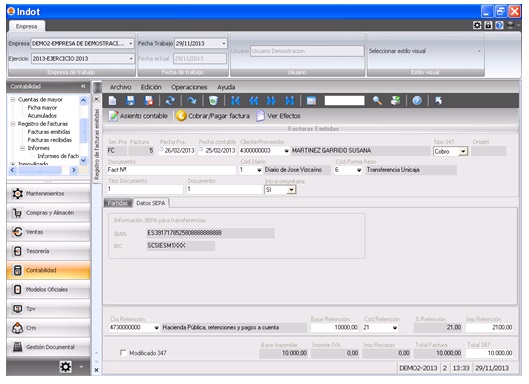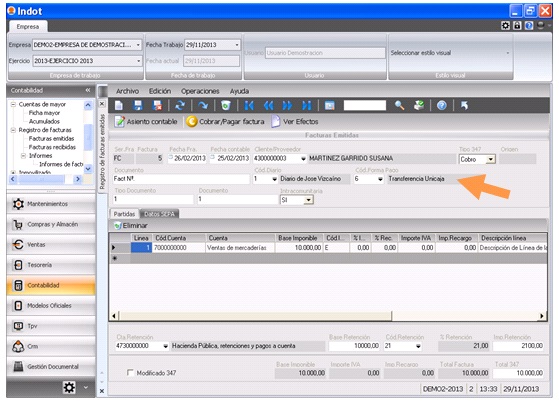 37.1.2.1 Caso Práctico: Crear una factura emitida con forma de pago transferencia