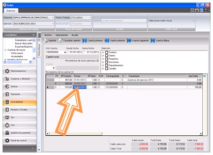 Al filtrar los movimientos de una cuenta contable en la ficha de mayor, automáticamente te lleva al último movimiento generado. De esta manera es más cómoda la forma de consultar los apuntes.