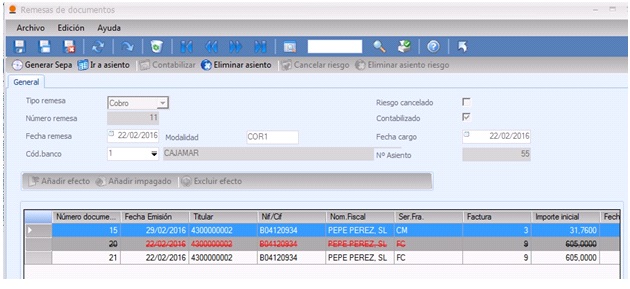 Si el documento que hemos impagado estuviese dentro de una remesa, esta situación se verá reflejada en la misma: