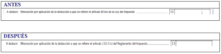 Según lo dispuesto en la Ley 26/2014, de 27 de noviembre, se introduce en el artículo 110.3.c) del Reglamento del Impuesto una deducción del rendimiento neto a efectos del cálculo del pago fraccionado trimestral para aquellos obligados tributarios que desarrollen actividades económicas, cuando la cuantía de los rendimientos netos de dichas actividades económicas en el ejercicio anterior haya sido igual o inferior a 12.000 euros. Este importe se consignará en la casilla 13 del Modelo 130 y en la casilla 09 del Modelo 131.