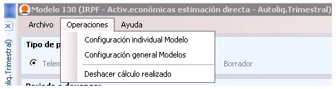 Por esta razón, debemos configurar en INDOT, previo a la emisión del modelo, el valor de estos rendimientos. Para ello, en la ventana del modelo seleccionamos “Operaciones – Configuración individual del modelo”: